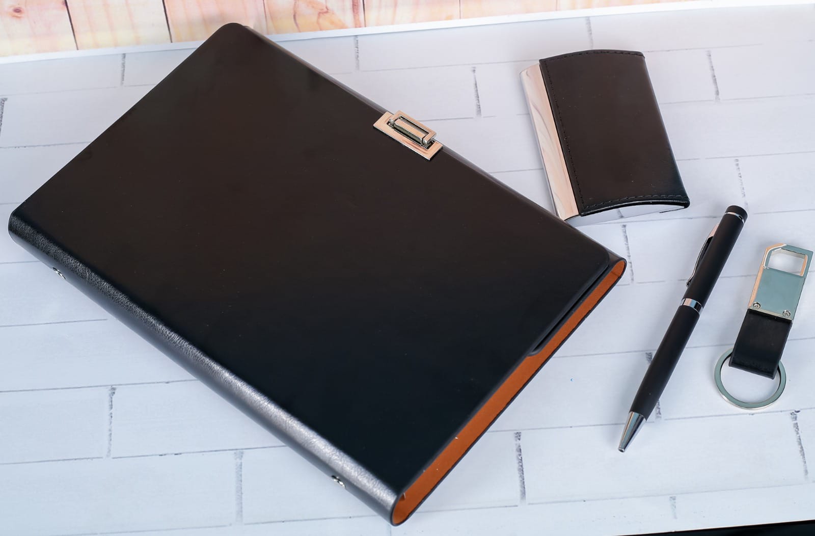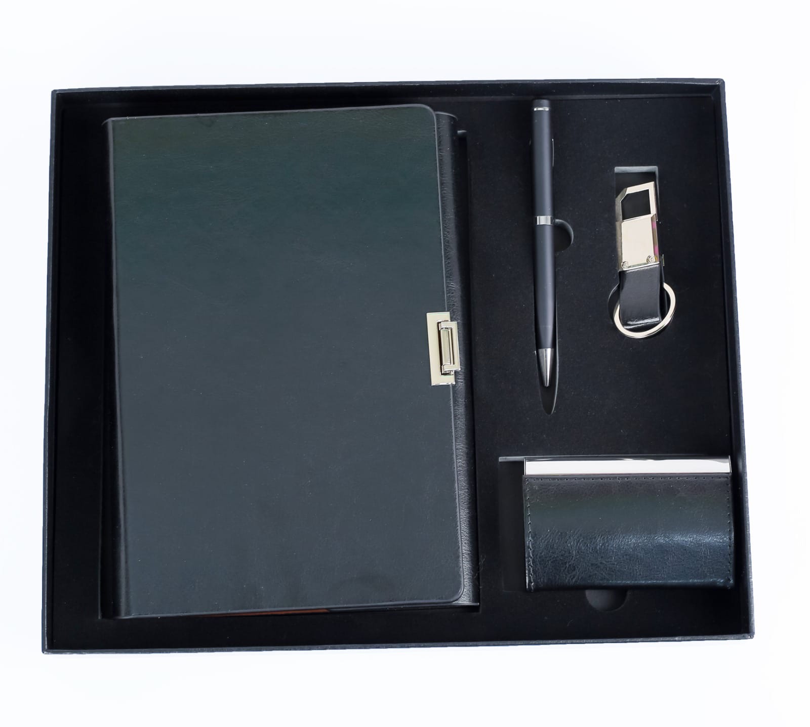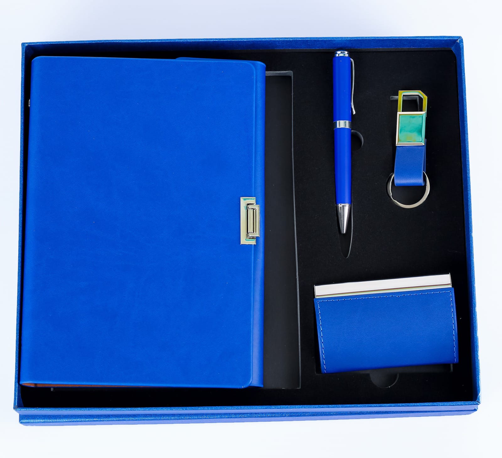 This Executive Gift Set G9  is the epitome of sophistication and functionality. Featuring a Notebook, Business cardholder, Keyholder & Pen. The Executive Gift Set G9  is crafted with high-quality materials, ensuring durability and a luxurious feel. Its vibrant color adds a touch of elegance to any workspace. The pen, designed with precision and elegance in mind, glides effortlessly across the page, making writing a pleasure. The pen holder keeping pen securely in place, preventing it from getting lost or misplaced. This gift set is perfect for professionals who appreciate the finer things in life and value both style and practicality. Whether it’s for a colleague, a client, or even for yourself, this executive gift set is sure to impress and make a lasting impression