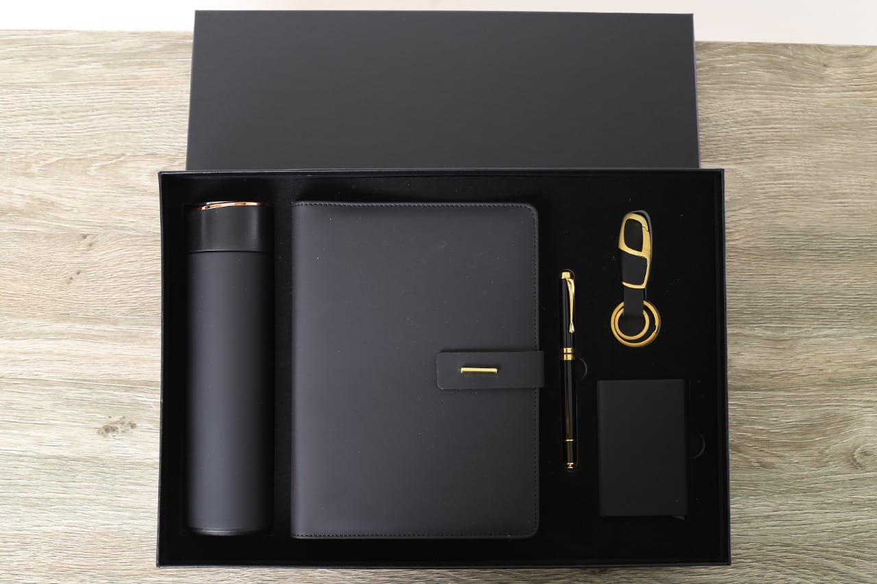This Executive Gift Set G11  is the epitome of sophistication and functionality. Featuring a notebook, a sleek pen, and a convenient pen holder. The Executive Gift Set G11  is crafted with high-quality materials, ensuring durability and a luxurious feel. Its vibrant color adds a touch of elegance to any workspace. The pen, designed with precision and elegance in mind, glides effortlessly across the page, making writing a pleasure. The pen holder keeping pen securely in place, preventing it from getting lost or misplaced. This gift set is perfect for professionals who appreciate the finer things in life and value both style and practicality. Whether it’s for a colleague, a client, or even for yourself, this executive gift set is sure to impress and make a lasting impression