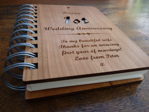 Customise your executive wooden or leather notebook with your own message, favorite quote, or logo. Carve your brand, add a happy birthday message or wish your parents a happy anniversary with our wooden notebook.